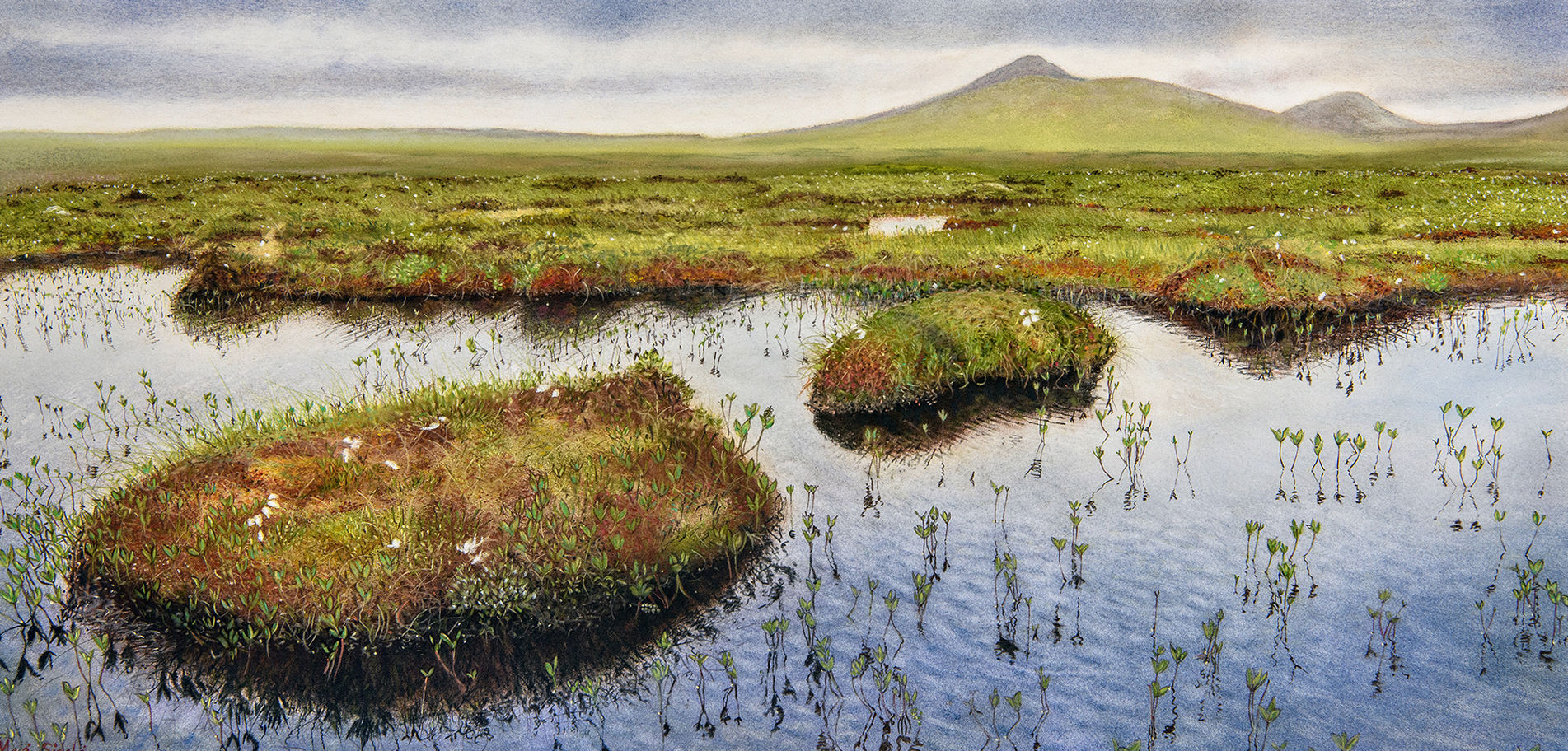 A recent exhibition of new work, “The Flows and the Flora”, is a meticulously observed study of the unique landscapes and plant life of the Flow Country, a vast area of bog peatland stretching across Caithness and Sutherland. In 2024 it was awarded Unesco World Heritage status, the first site on mainland Britain to do so.
